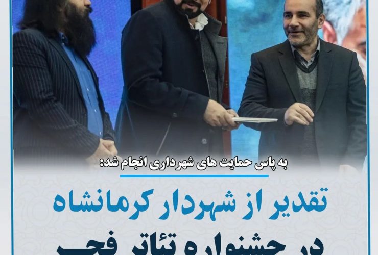 تقدیر از شهردار کرمانشاه در بیست و هفتمین جشنواره تئاتر فجر مناطق کشور در بیست و هفتمین جشنواره تئاتر فجر مناطق کشور از دکتر نادر نوروزی شهردار کرمانشاه و مهدی احمدی رئیس سازمان حمل و نقل مسافر شهرداری کرمانشاه تقدیر ...